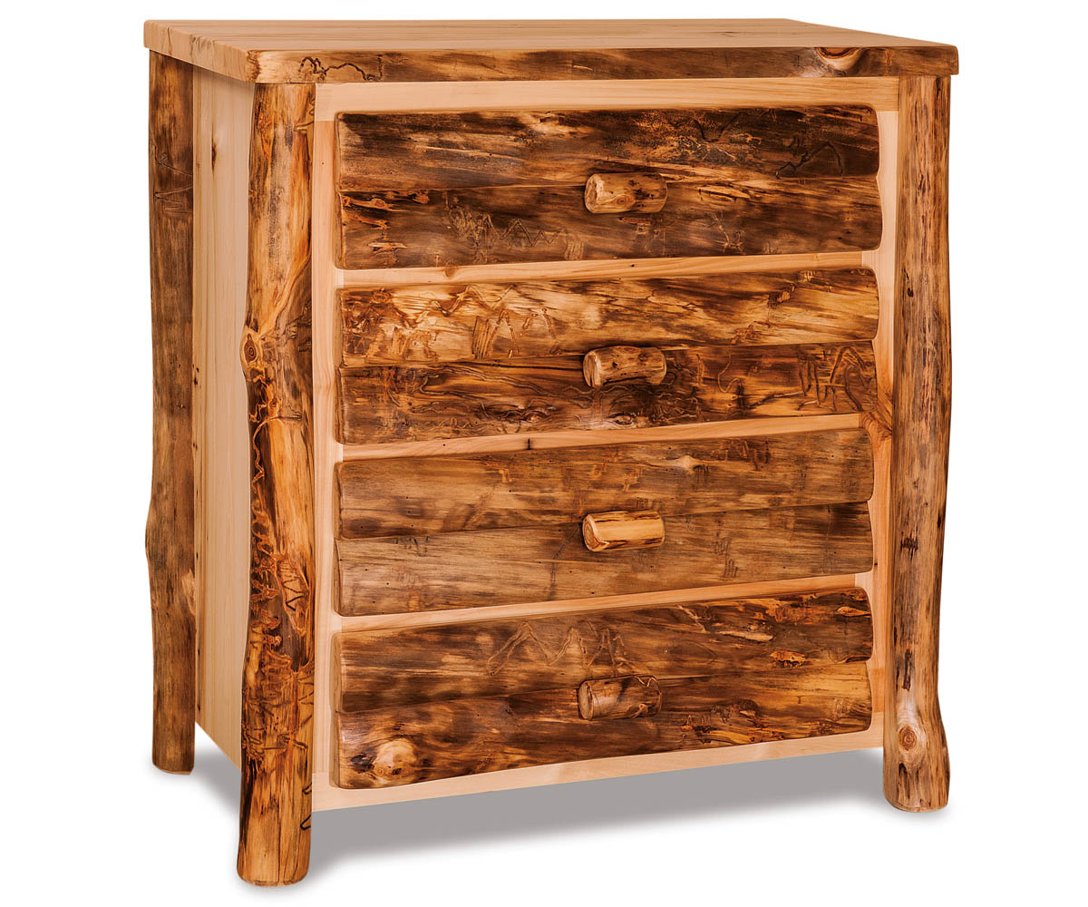 Features: • Each log is unique creating a unique piece of art • Each piece will look a bit different due to the variety of logs • Slab fronts created from aspen logs • Drawers are dovetailed • Full extension soft close drawer slides