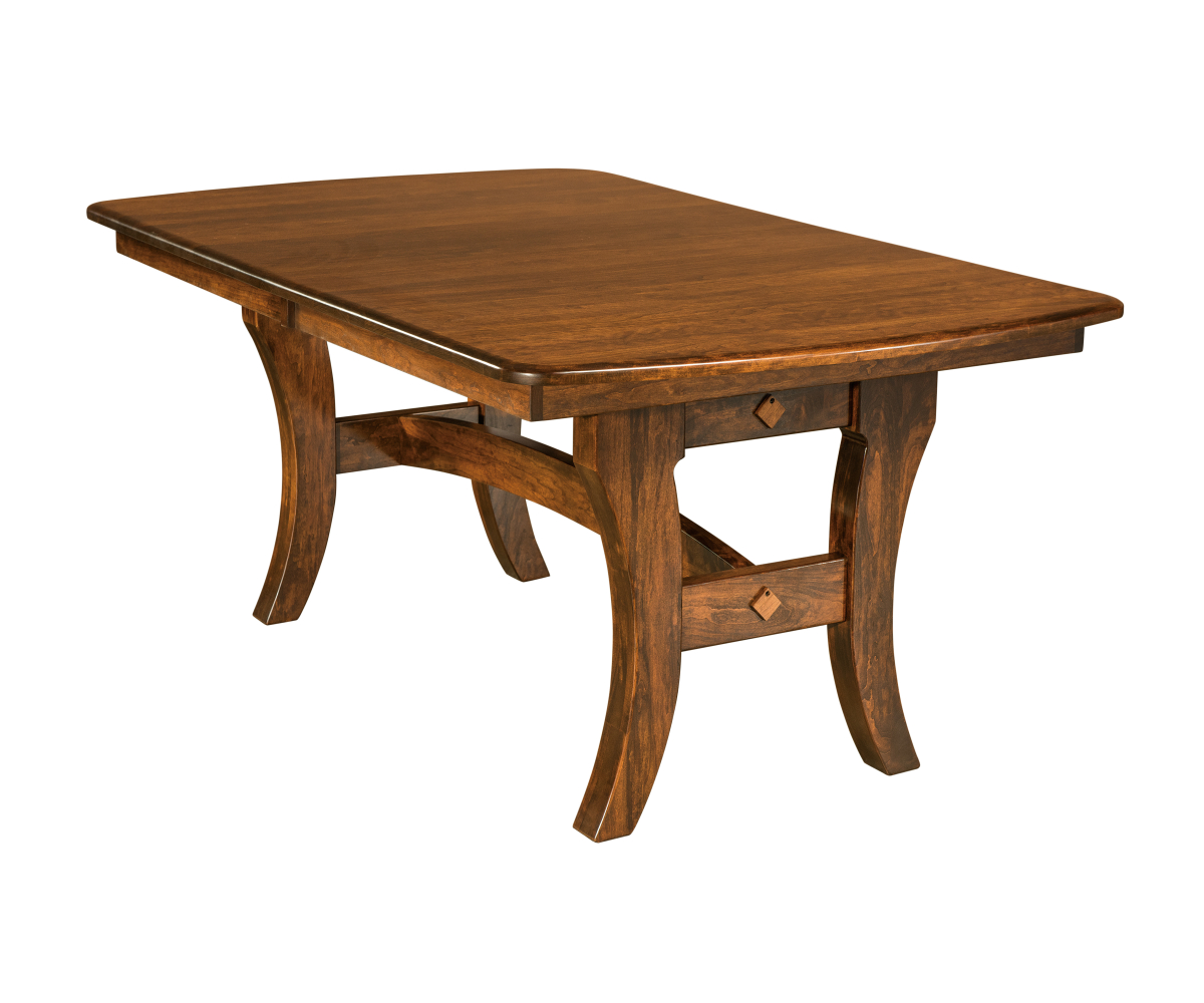 Features: • 1″ top with bowed ends • 2½” thick trestle legs • Leaves are self storing • Available with up to four 12″ leaves