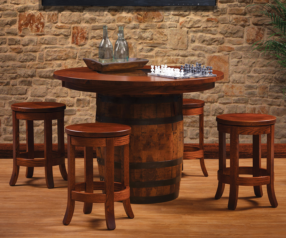 This Collection Includes: • Barrel Table • Barrel Round Stool • Barrel Square Stool