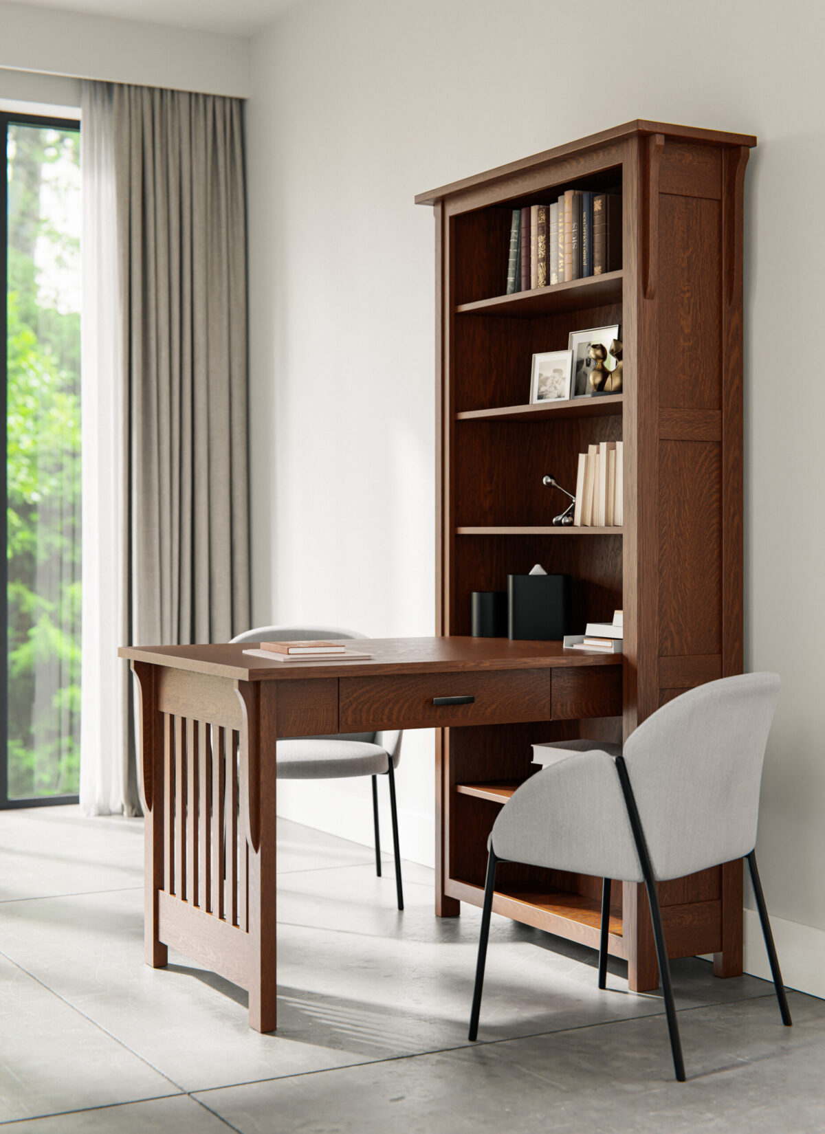 Dimensions: Desk: 52″W x 32″D x 31″H Bookcase Topper: 41″W x 14″D x 80″H