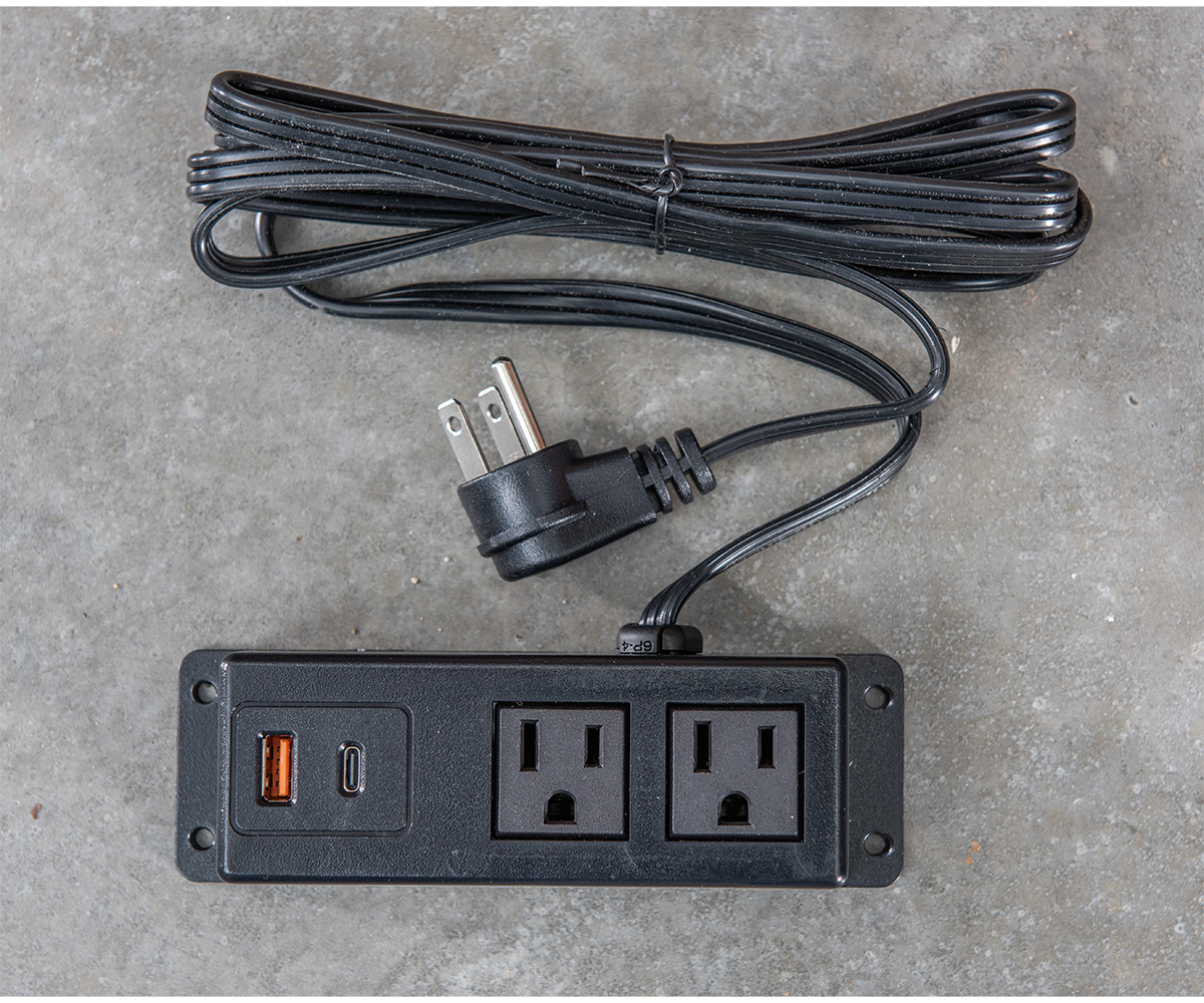 Options: • Sliding top to show a security tray • Power strip • LED touch night light – illuminates under the stand • Soft close under-mount drawer slides