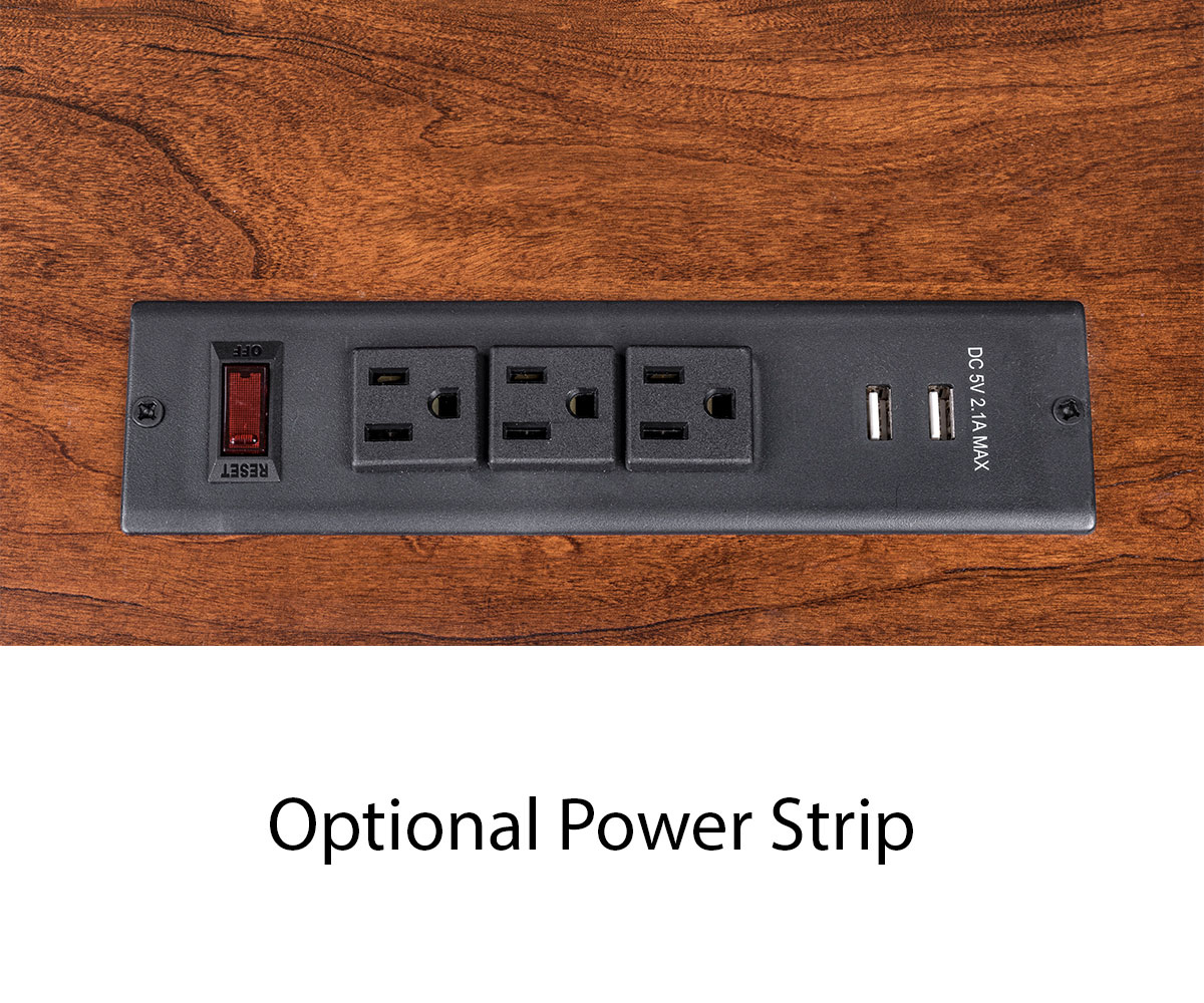 Options: • Power strip • Wireless charging port
