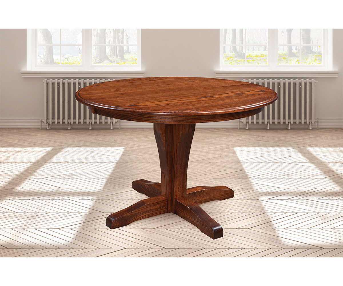 Common sizes available with seating options: • 42″ Round: Solid Top, Seats 4 • 42″ Round: Two Leaves, Seats 6
