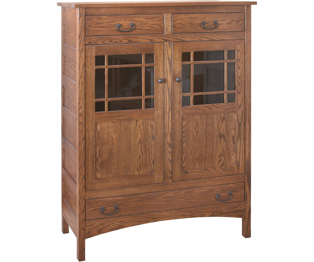 Features: • Two shelves behind doors • Dovetailed drawers • Full extension drawer slides • Mullion on the glass doors