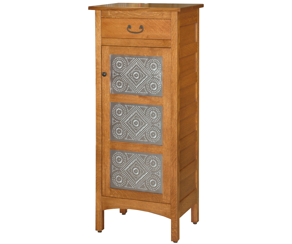 Features: • Dovetailed drawer • Full extension drawer slides • Antique tin doors • Two adjustable shelves behind the door