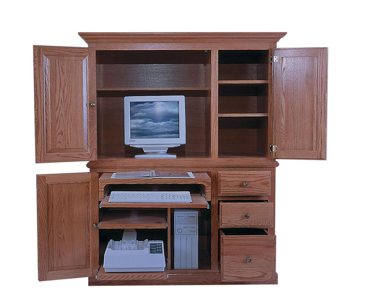 Features: • Pull out keyboard shelf • Two pullout shelves bottom left • Dovetailed drawers • Full extension drawer slides