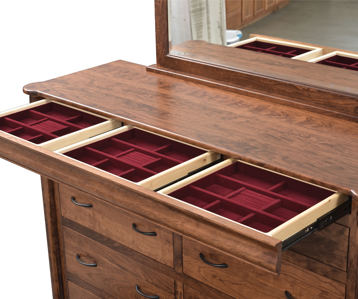 Features: • Dovetailed drawers • Hidden jewelry drawer in the molding