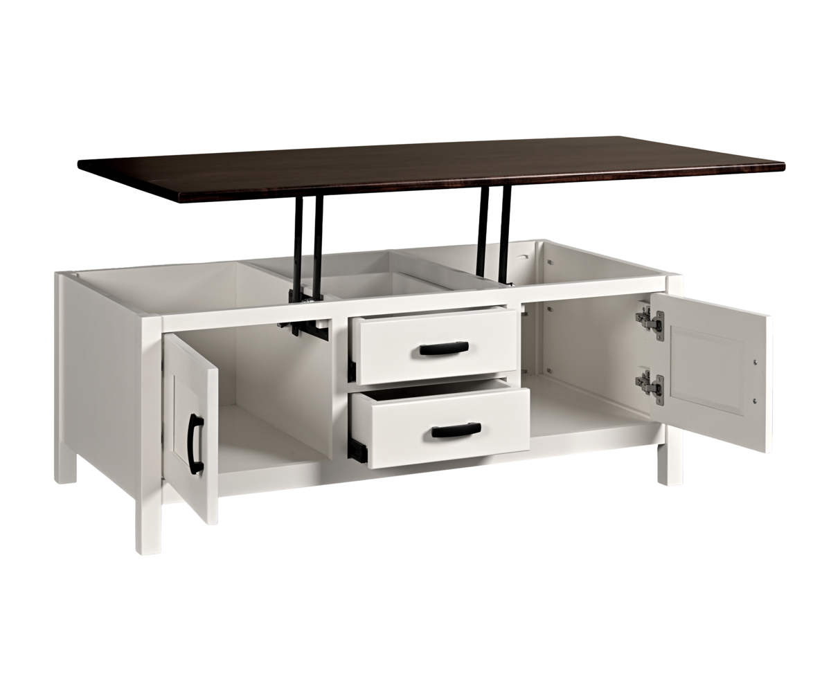 Features: • Lift-top table for serving or working area • Lift extends table to 28½”H • Soft close hinges on door • Dovetailed drawers • Full extension drawer slides