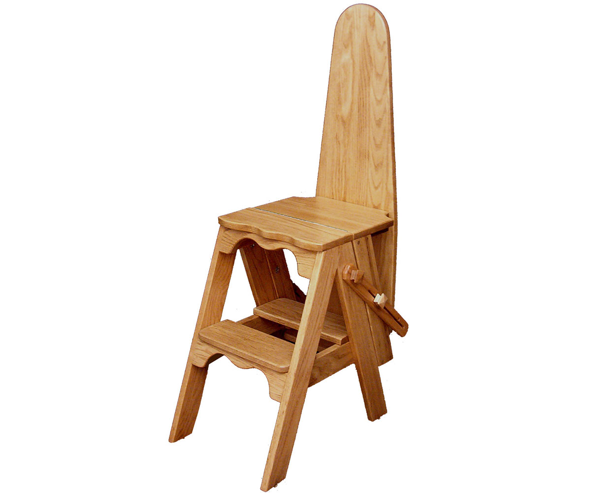 Features: • Piece converts into several different useful items • Can be used as a chair • Flip it to the center and use it as a iron board • Final position reveals a step stool