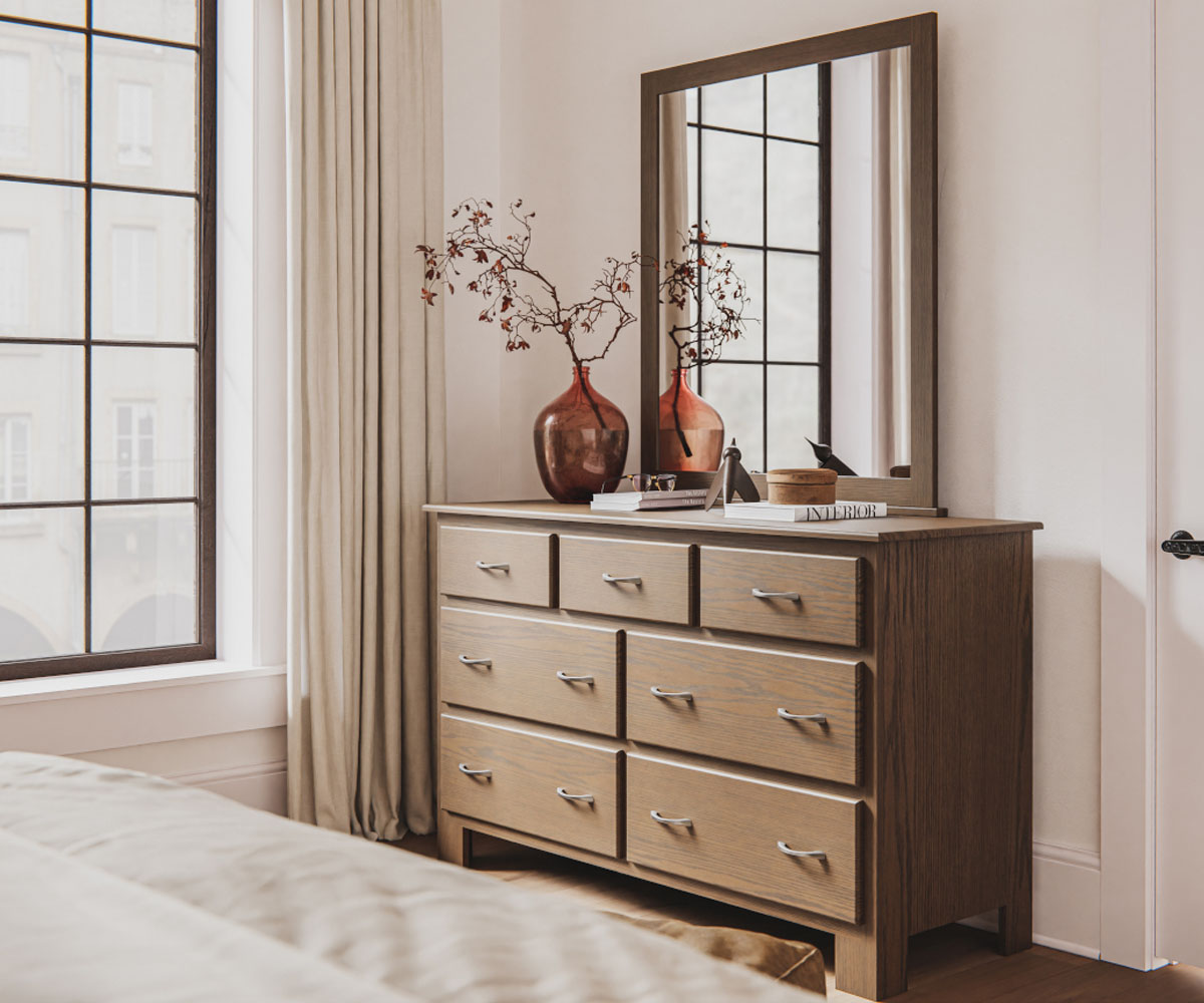 Dimensions: Dresser: 56″W x 19¾”D x 34″H Mirror: 36″W x 41″H
