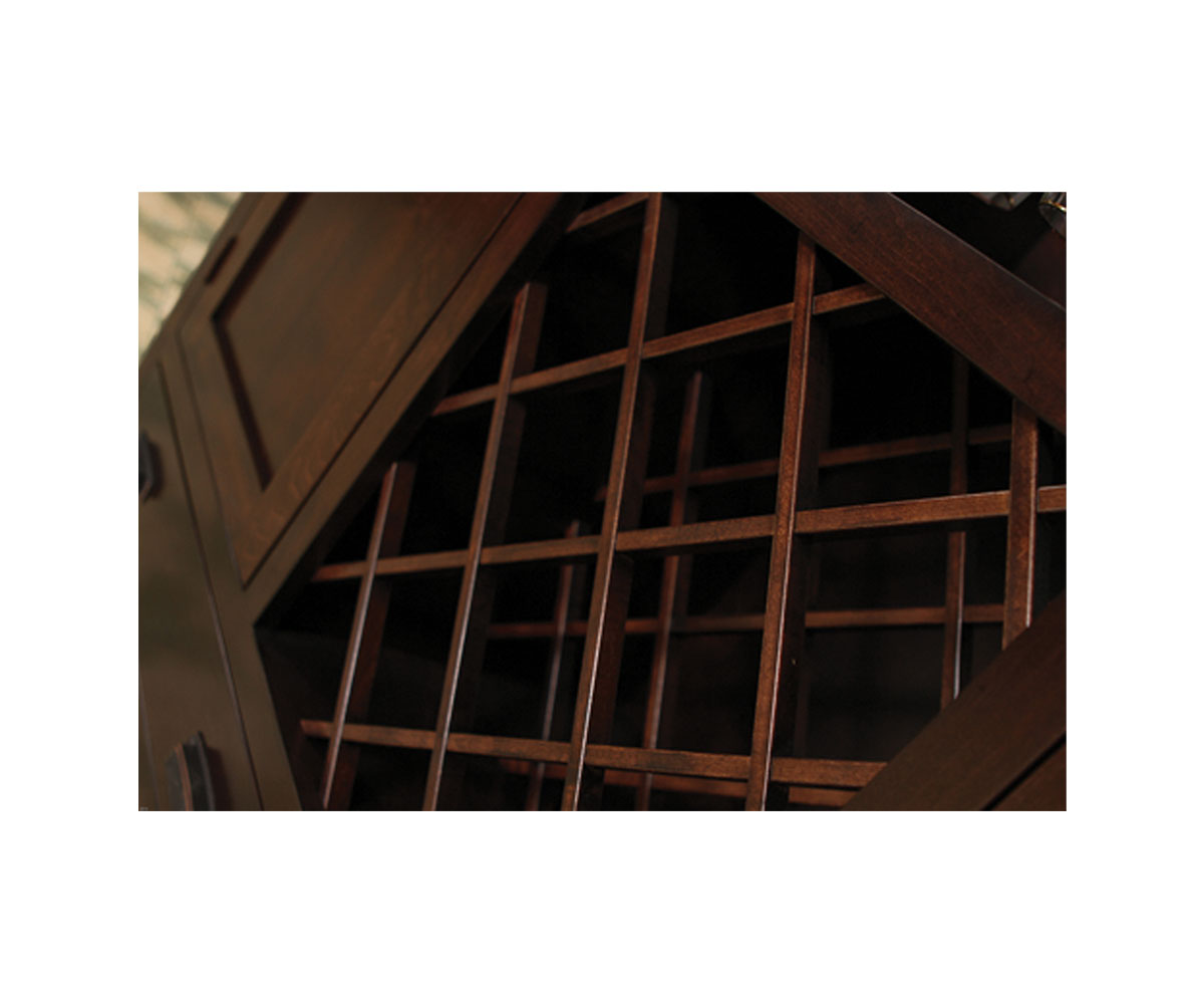 Features: • 1¼” thick rough sawn top • Pullout serving shelves • One adjustable shelf behind each door • Wine glass holder in the center • Wine bottle holder in the center • Dovetailed drawers • Full extension drawer slides