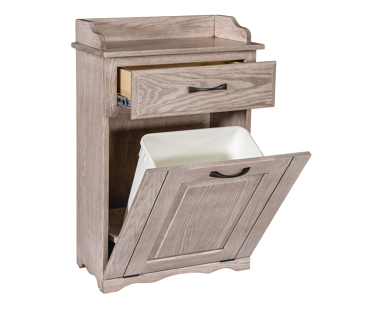 Features: • Dovetailed drawer • Full extension drawer slides • Front panel tilts forward for easy access • A 35 qt trash can fits inside